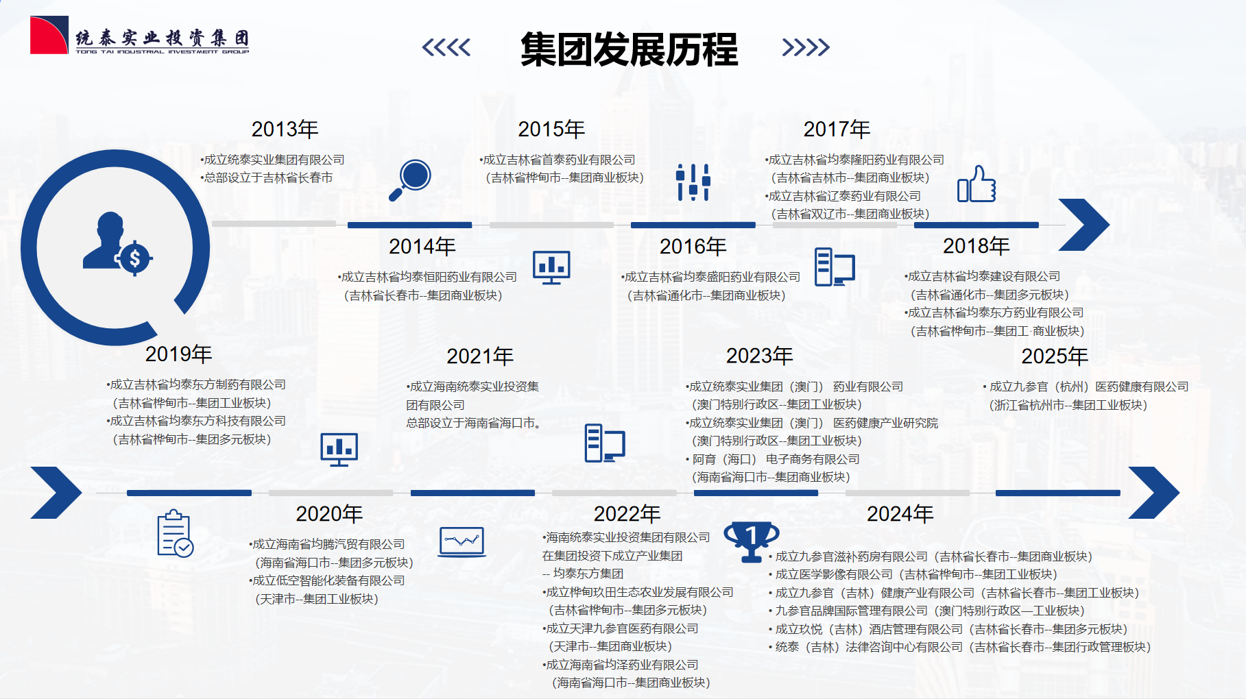 统泰实业集团2013年成立于吉林省省会长春市;统泰实业投资集团2021年成立于海南省省会海口市。