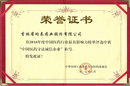 2016年度“中国医药守法诚信...