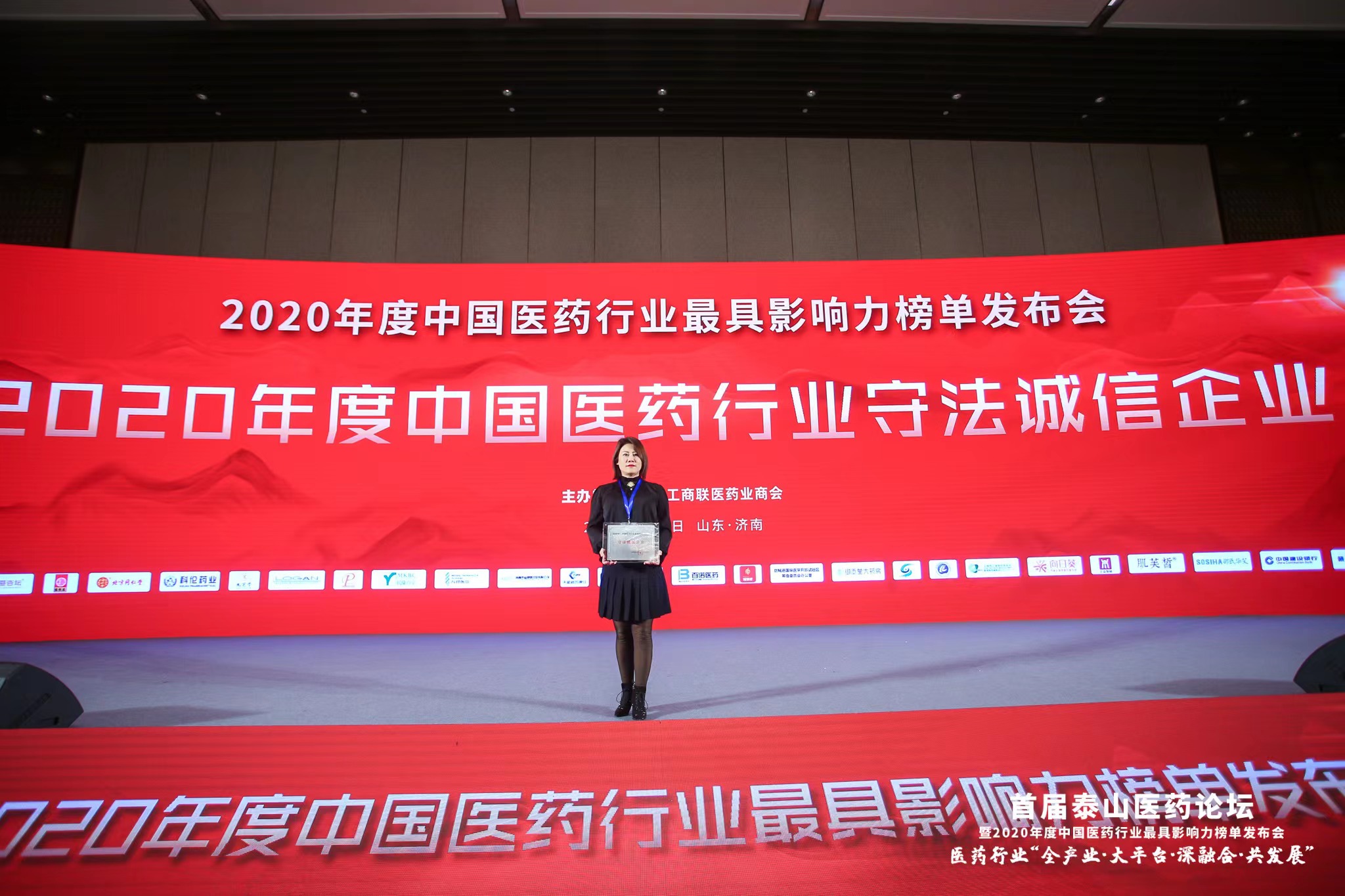 2021年10月16日,由全国工商联医药业商会主办的“首届泰山医药论坛暨 2020 年度中国医药行业最具影响力榜单发布会”,在山东省济南市召开。统泰实业投资集团商业板块总裁张艳出席本次会议并领奖。