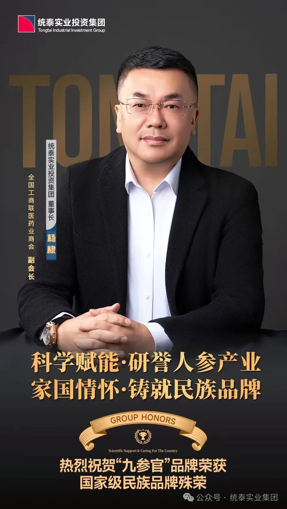统泰实业投资集团董事长杨棣先生研誉国家级民族品牌“九参官”并向全国人民恭贺新春吉祥!