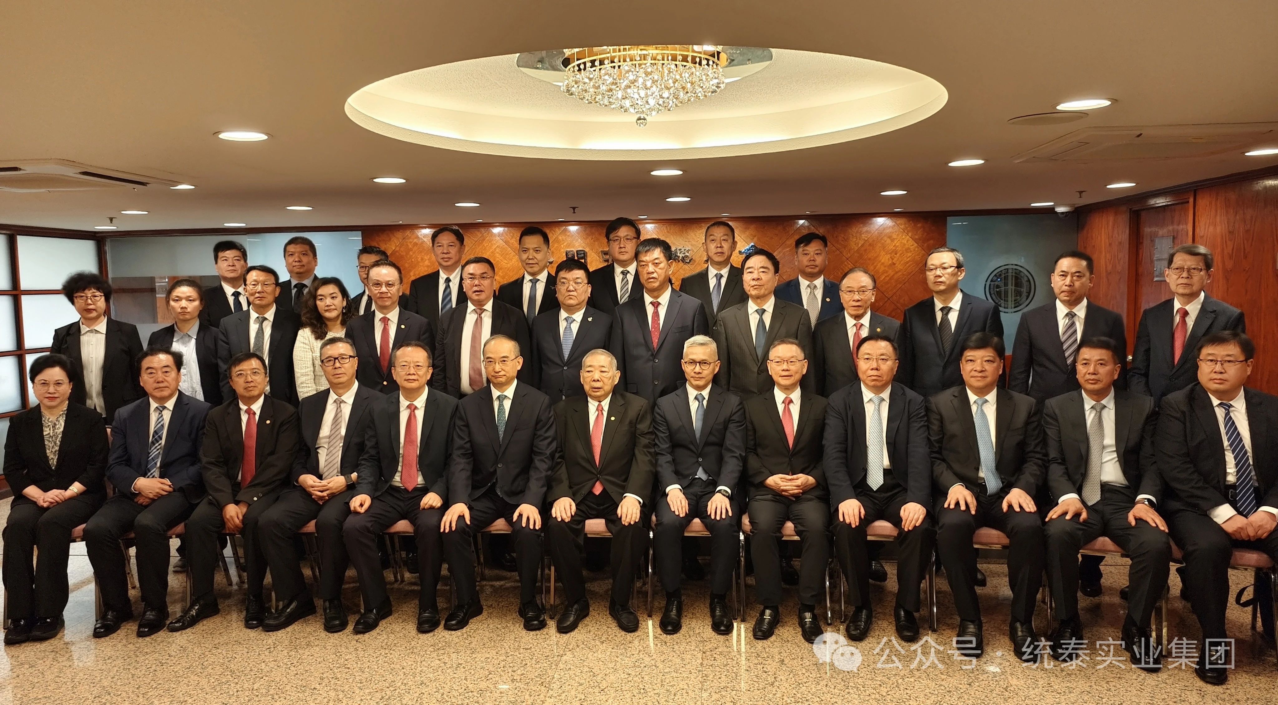 图一:统泰集团董事长杨棣(二排左六)陪同吉林省委书记黄强(一排左六)率领的吉林代表团,与澳门中华总商会领导合影留念。