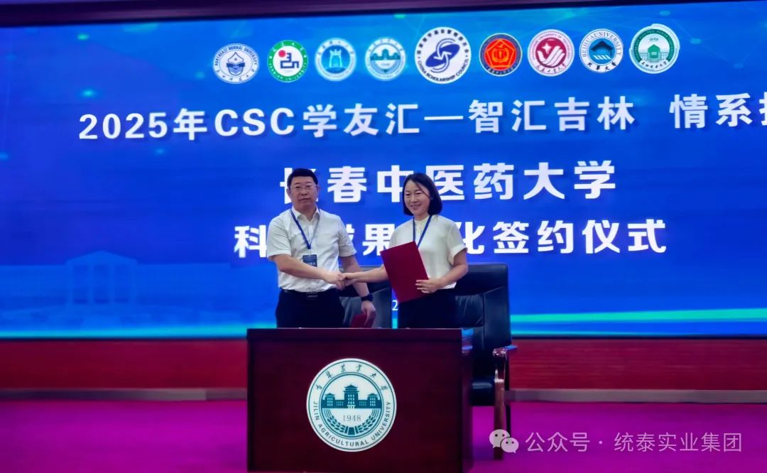 6月26日,由国家留学基金管理委员会主办的“智汇吉林 情系振兴”2025吉林省CSC学友汇活动在吉林农业大学隆重举行。作为吉林省内唯一受邀参会的中医药企业代表,统泰实业投资集团在活动现场与长春中医药大学签署了“黑参复合成型工艺及黑参卵油健康功能食品研究与开发”项目合作协议,标志着集团在中医药科研创新与校企合作领域再结硕果。