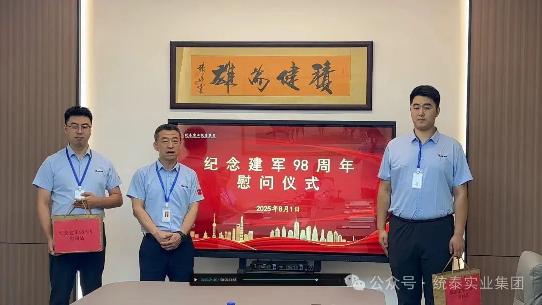 今天的会议恰逢建军98周年纪念日,集团积极发扬拥军优属的光荣传统,专门组织了对退伍军人的“慰问仪式”。仪式上,杨棣董事长发表了热情洋溢的讲话,对集团全体退伍军人致以节日的问候,对他们在集团的努力和贡献给予肯定,并对大家今后的工作提出新的要求。之后,杨棣董事长亲自为大家颁发了纪念品,集团党委专职副书记王洪利代表退伍军人作了发言。