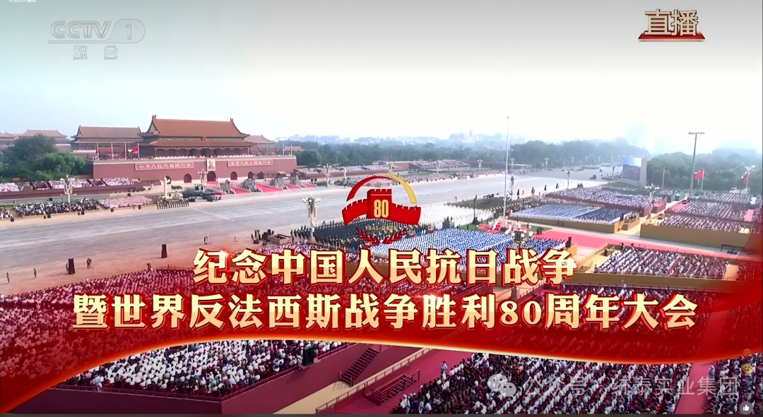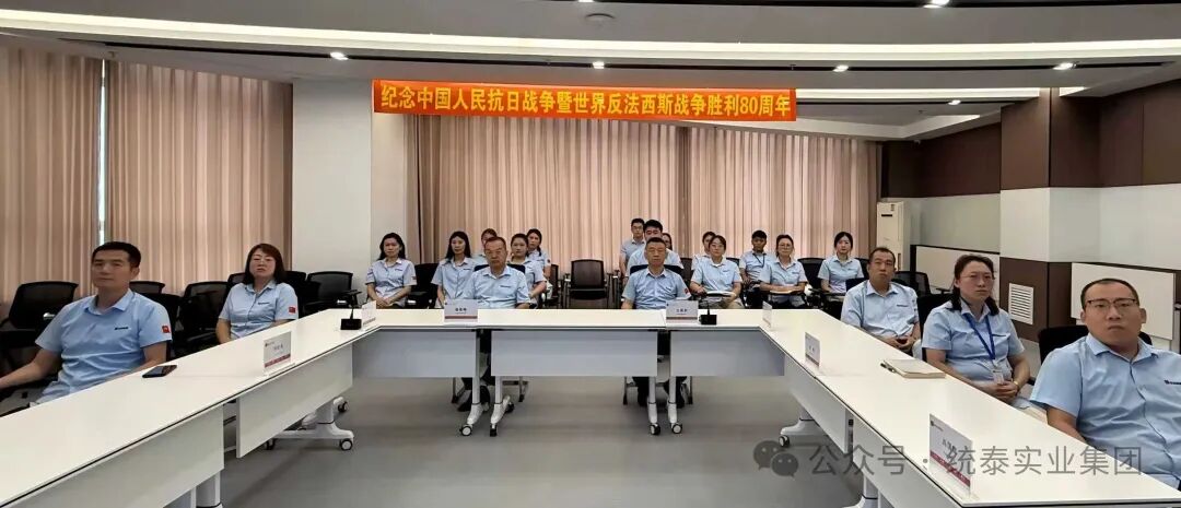 2025年9月3日上午9时,纪念中国人民抗日战争暨世界反法西斯战争胜利80周年大会在北京天安门广场隆重举行。统泰实业投资集团党委高度重视这一重要历史时刻,组织集团总部及各子公司职责员工以集中观看直播的方式,共同缅怀革命先烈,汲取奋进力量。