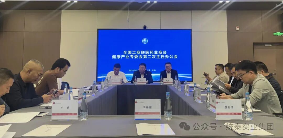 2025年9月23日,由全联医药业商会健康产业专委会主办、统泰实业投资集团承办的专委会第二次主任办公会议在长春统泰集团总部隆重举行。全联医药业商会常务会长、健康产业专委会主任钮立卫主持会议,全联医药业商会副会长、统泰集团董事长杨棣出席会议,专委会核心成员及行业专家齐聚一堂,共商健康产业高质量发展大计。