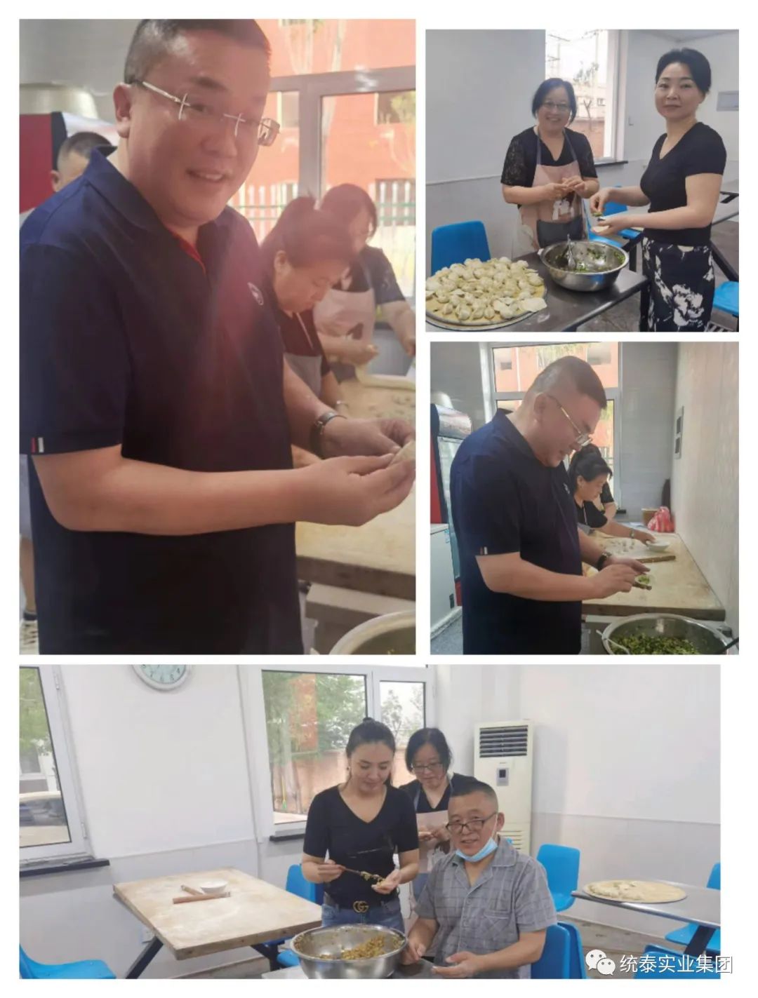 同日下午,董事长没有间歇,携集团工业板块总裁曲艳梅、工、商联合副总裁迟晶等部分集团高管返回天津产业公司食堂一同进行包饺子团建活动。当日恰逢父亲节,集团领导与天津在岗员工一起度过了这个特殊的节日。整个食堂萦绕在饺子飘香、笑声不断的氛围中,久久不曾散去。